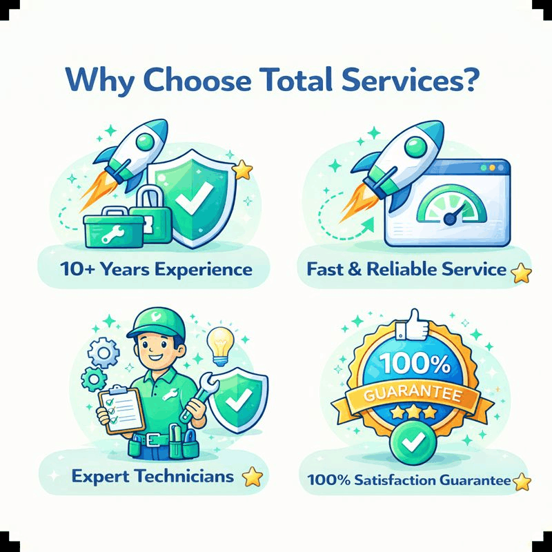 At Total Services, we provide fast, reliable, and affordable home appliance repair services in Mumbai and nearby areas such as Andheri, Mulund, Ghatkopar, Kanjurmarg, Vikhroli, and Bhandup.